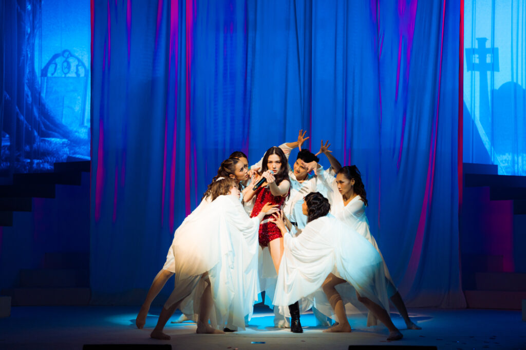 เปิดฉากด้วยการปรากฏตัวสุดอลังการของวี ที่มาพร้อมโปรดักชันที่ผสมผสานกลิ่นอายบรอดเวย์ ราวกับการนั่งชมละครเพลงที่เล่าเรื่องราวผ่านเสียงร้องและการแสดงสดมากกว่าจะเป็นเพียงคอนเสิร์ตธรรมดา ก่อนจะค่อย ๆ พาผู้ชมเข้าสู่บรรยากาศที่ผสมผสานระหว่างคอนเสิร์ตและละครเวทีได้อย่างลงตัว เพื่อให้สมกับการจัดแสดงอยู่ในเธียเตอร์ ตอกย้ำความเป็น “So Very Dramatic” ในแบบฉบับของเธอได้อย่างสมบูรณ์แบบ