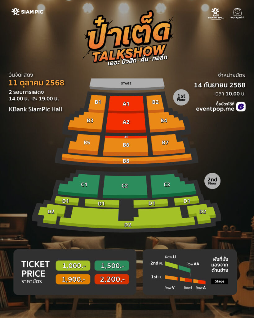 “ป๋าเต็ดทอล์กโชว์ เดอะ มิวสิก-คั่น-ทอล์ก” จัดเพียง 2 รอบเท่านั้น วันเสาร์ที่ 11 ตุลาคม 2568 เวลา 14.00 น. และ 19.00 น. ที่ KBank SiamPic Hall ชั้น 7 สยามสแควร์วัน