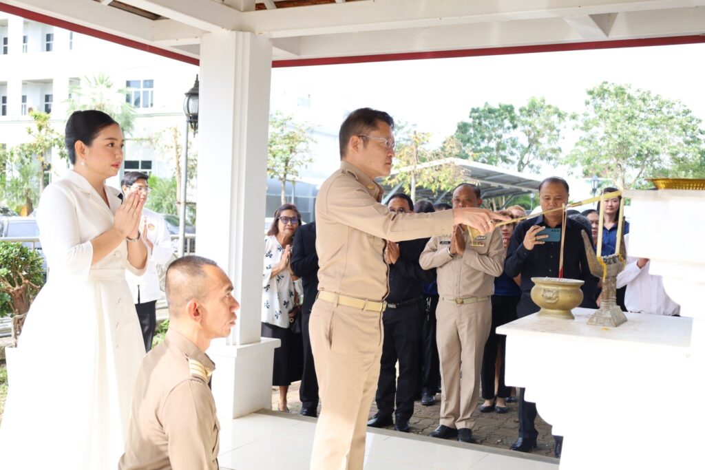 ภายหลังพิธีต้อนรับ ผู้ว่าราชการจังหวัดกระบี่และนายกเหล่ากาชาดจังหวัดกระบี่ ได้ประกอบพิธีสักการะสิ่งศักดิ์สิทธิ์ประจำศาลากลางจังหวัดกระบี่ อาทิ พระพุทธสิหิงค์ ศาลพระภูมิ ศาลตายาย ศาลหลักเมือง พระบรมราชานุสาวรีย์รัชกาลที่ 5 รวมถึงพระพุทธรูปประจำห้องทำงานชั้น 4 บนศาลากลางจังหวัด เพื่อความเป็นสิริมงคลก่อนเริ่มภารกิจ