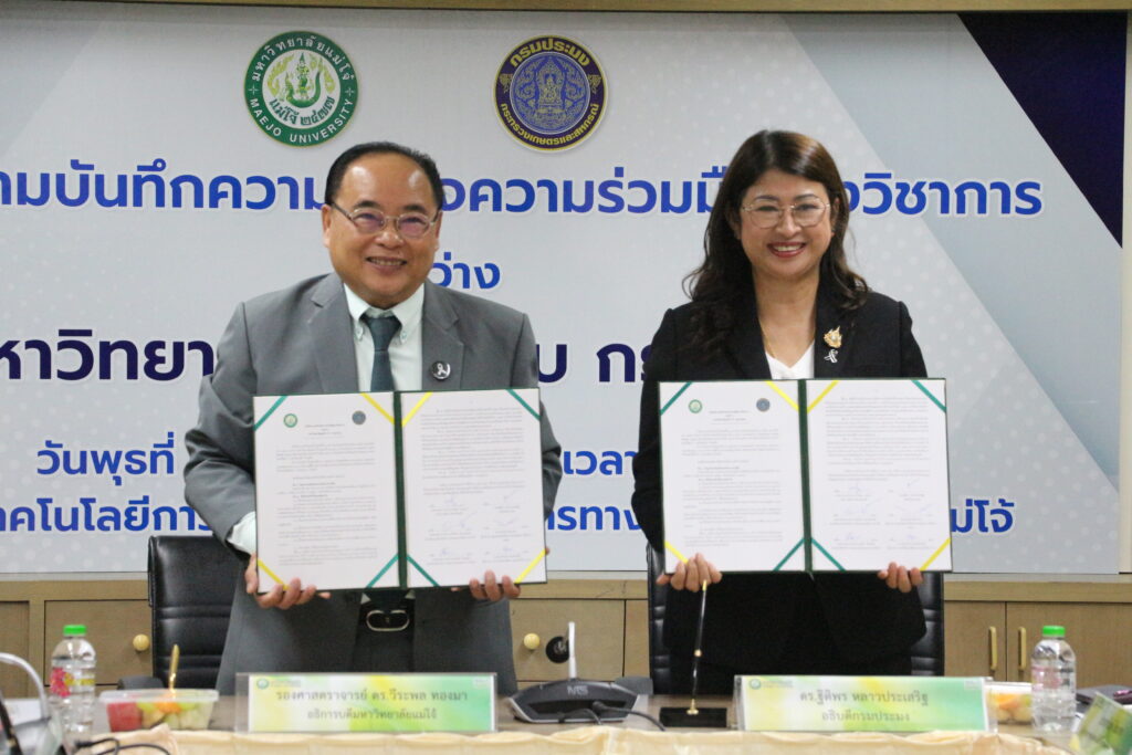 วันที่ 18 กุมภาพันธ์ 2569 มหาวิทยาลัยแม่โจ้ โดยคณะเทคโนโลยีการประมงและทรัพยากรทางน้ำ จัดพิธีลงนามบันทึกความตกลงความร่วมมือทางวิชาการ (MOA) ร่วมกับกรมประมง เพื่อผนึกกำลังสร้างเครือข่ายความร่วมมือในการพัฒนาองค์ความรู้ งานวิจัย และบุคลากรด้านการประมงของประเทศ โดยได้รับเกียรติจาก รศ.ดร.วีระพล ทองมา อธิการบดีมหาวิทยาลัยแม่โจ้ และ ดร.ฐิติพร หลาวประเสริฐ อธิบดีกรมประมง เป็นผู้แทนลงนาม ทั้งสองฝ่าย ทั้งนี้มีผู้บริหารระดับสูงของทั้งสองหน่วยงานเข้าร่วมเป็นสักขีพยาน ณ คณะเทคโนโลยีการประมงและทรัพยากรทางน้ำ มหาวิทยาลัยแม่โจ้